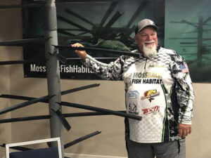 Former Duck Dynasty TV star John Godwin showed off his signature series fish attractor from Mossback Fish Habitat. One morning they place of the Mossback attractors in the Alabama River. Dannemueller said, “We sat watching the attractor with a Garmin LiveScope and literally within five minutes we saw fish move into it.” (Photo: Richard Simms, CrappieNOW Editor)