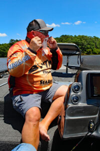 Bryan St. Ama speeds down the Alabama River in his Sea Ark, watching closely for any tricky sandbars using his Humminbird Helix. St. Ama is also on the Advisory Council for the American Catfishing Association. ACA’s mission is to, “Diligently provide the efforts, information and resources to better the sport of catfishing and unify the catfishing community.” (Photo: Richard Simms, CrappieNOW Editor)