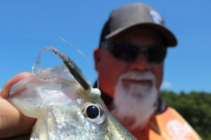John Godwin is a big believer in Crappie Magnet lures, such as this Tennessee Shad Slab Curley, apparently with good reason. (Photo: Richard Simms, CrappieNOW Editor)