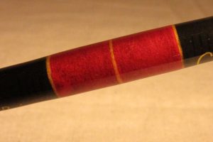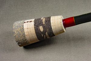 I made my own grips by gluing cork rings together and turning them on the lathe. Suppliers offer a wide range of attractive pre-made grips ready to install on the blank. The grips will have a small hole through the center that will need to be reamed to fit the blank. The blank is tapered slightly at the butt section so the hole will need to be tapered with a rattail file. File a bit and dry fit. A good two-part epoxy will be needed to glue the grip to the blank. Rough the grip area with 120 grit sandpaper to allow good adhesion to the blank. When handling the blank, wipe with a coffee filter (it’s non-linting) and some denatured alcohol. CAUTION- Use a thirty-minute epoxy. My first rod kit had five-minute epoxy. I barely got the grip in place as the epoxy started to set!