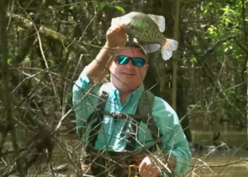 Read moreDetailsWesley Montgomery of Starkville, Mississippi hoists a dandy stringer of crappie caught wade fishing flooded backwaters in North Mississippi in...