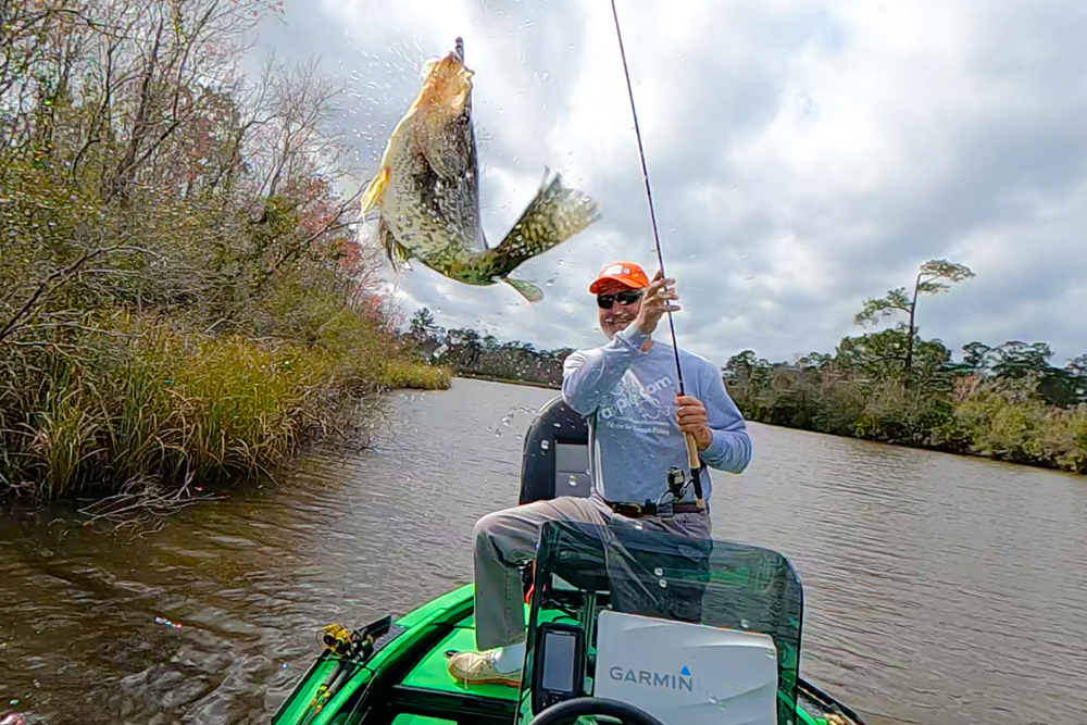 Picture the scene… You’re pulling up to one of your most productive spots. As you approach, your fish finder screen lights up, showing a large school of sac-a-lait holding at the top of a root ball 15 feet deep.
