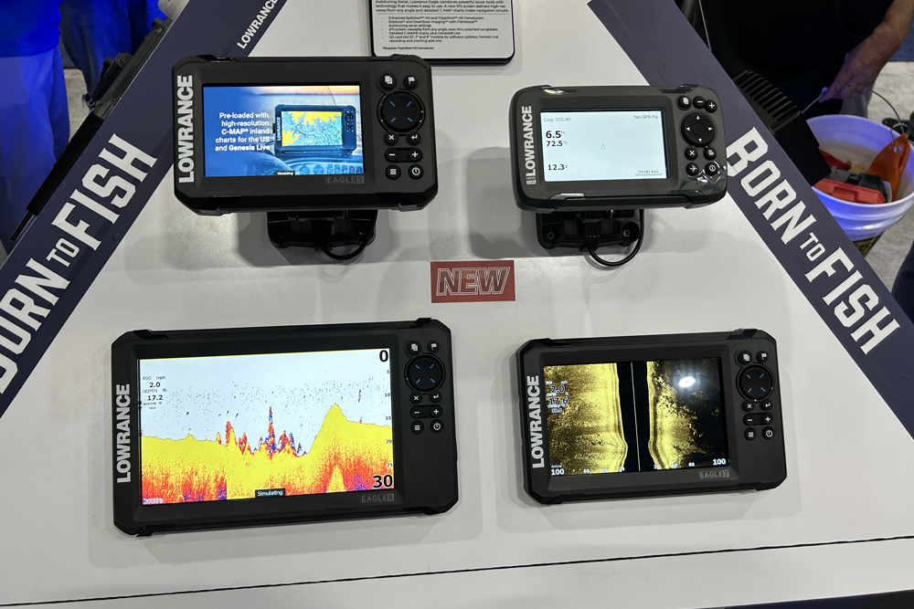 Lowrance released their new line of Eagle electronics, starting as low as $120, designed with features commonly found in high-end marine electronics. (Photo by Brad Wiegmann)