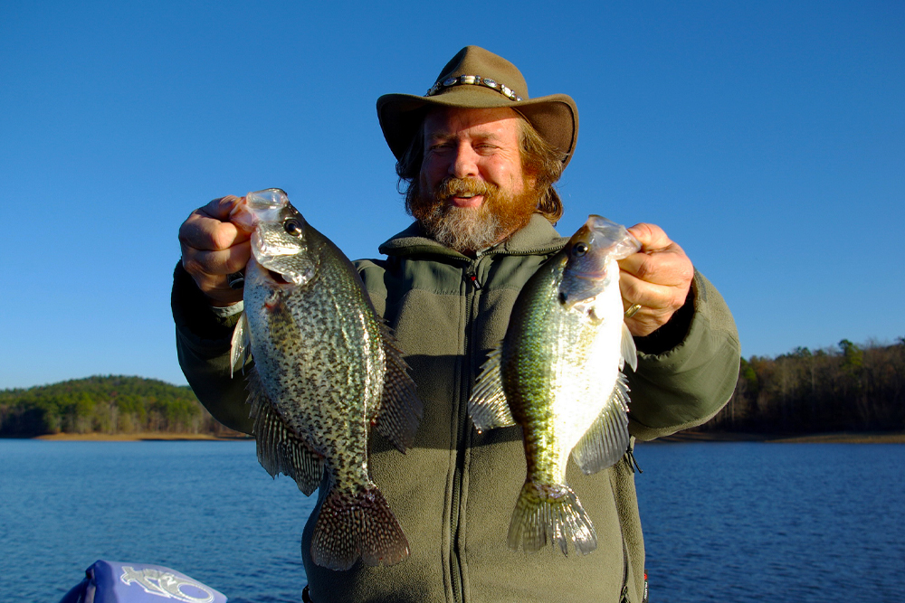Author Keith Sutton shows a dandy pair of crappie caught using some of his “power tactics.” (Photo: Jerry Blake)