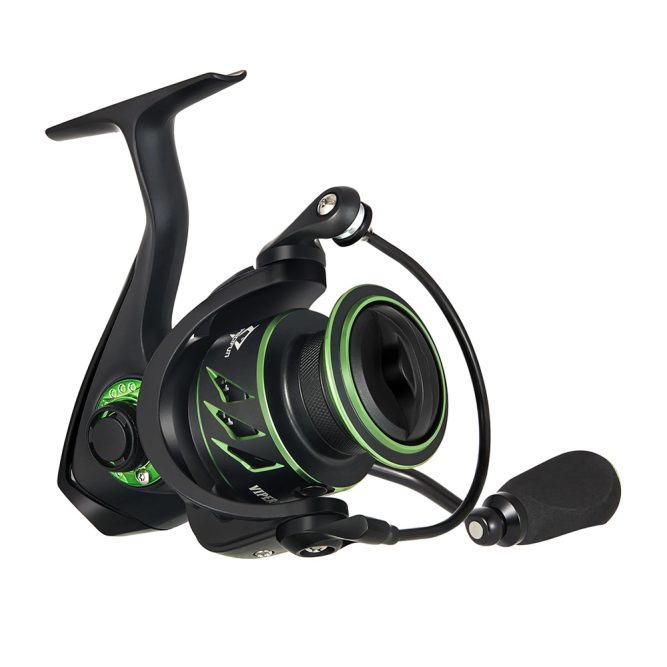 Think about all the features you want in a reel. Smooth operation, good drag, light, but strong. You’ll get all of that and more in a Piscifun Viper-X reel. This reel runs fairly fast, with either a 5.2 or 6.2:1 gear ratio. The Viper-X runs smooth through 10 ball bearings. It’s lightweight with a heavy-duty aluminum housing. The drag is strong for its size; it comes with a 8.8-, 22- or 33-pound maximum drag depending on model. You can order a Viper-X with a folding handle, helping simplify storage and prevent reel tangling and locking. Piscifun makes a great reel. For the price, they are a no-brainer and they frequently offer sales discounts. Try out a 500 or 1000 series on a crappie rod; MSRP $80.