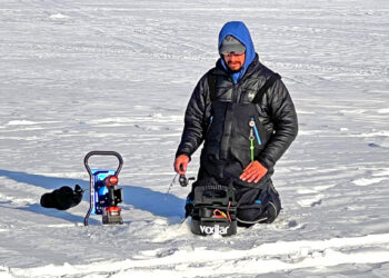 CrappieNOW writer Scott MacKenthun shows off a healthy crappie taken under the Minnesota ice with “spikes” rigged for what he ...
