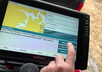 Garmin's home screen allow an angler to put the unit in sleep mode to conserve power. (Photo: Brad Wiegmann) ...